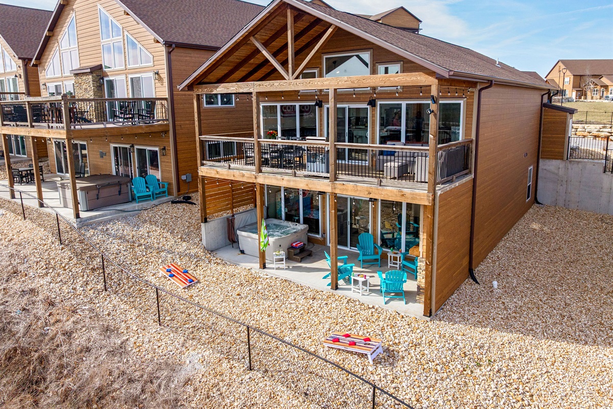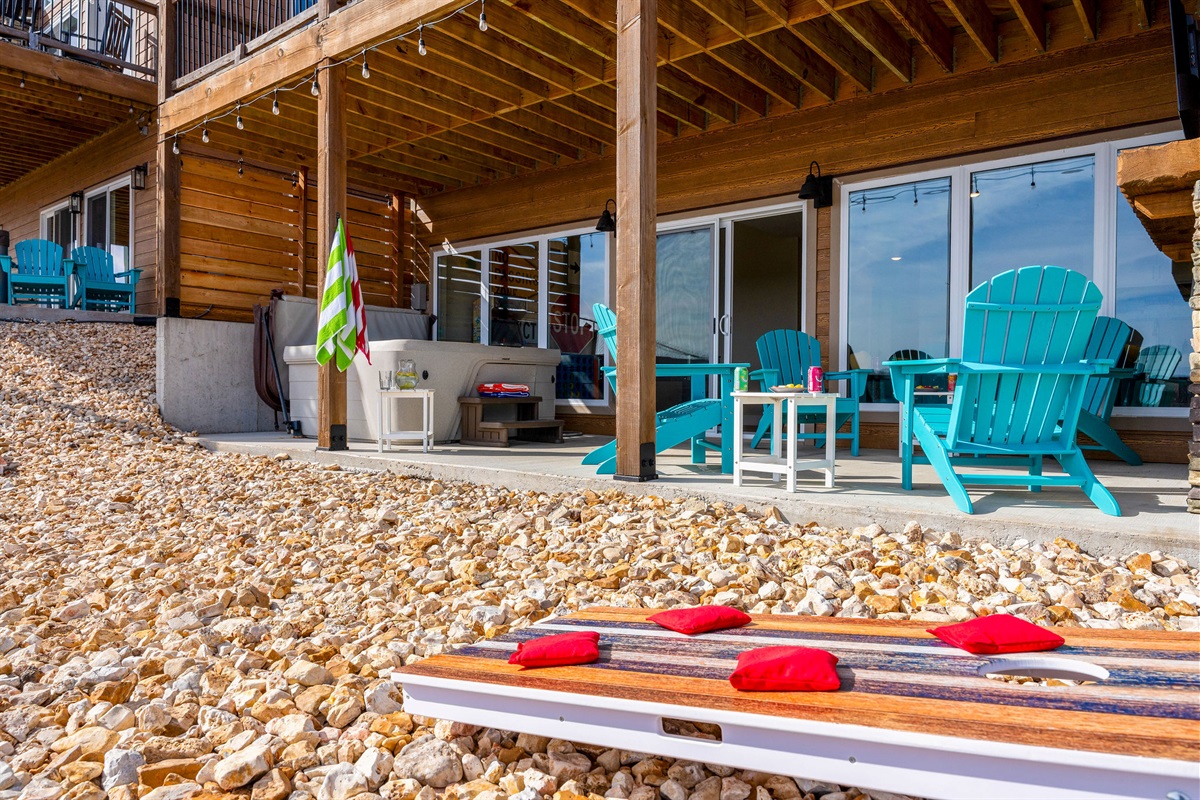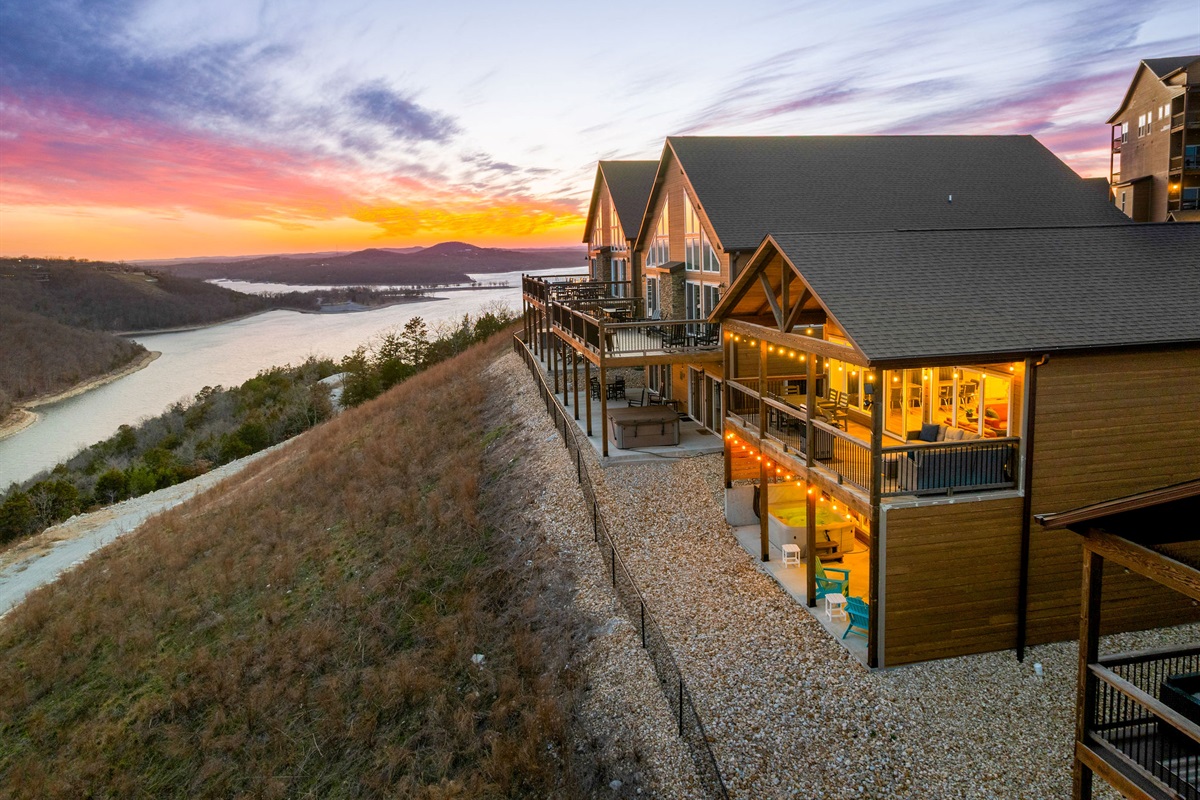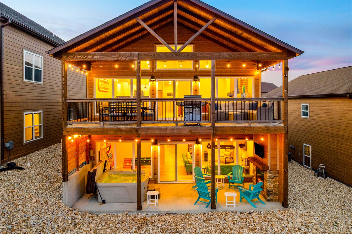This community has outdoor amenities like outdoor/indoor pools, pickleball courts, basketball courts, corn hole, and a massive kid's playground area to create long lasting memories. This home provides unique board games, arcades, foosball table, to keep the fun going on those rainy days. Come inside after a long day of activities and relax in the hot tub, watching the sunset, while overlooking the lake. Create a delicious meal on the grill while playing outdoor corn hole with your family or friends on one of Bransons summer nights.