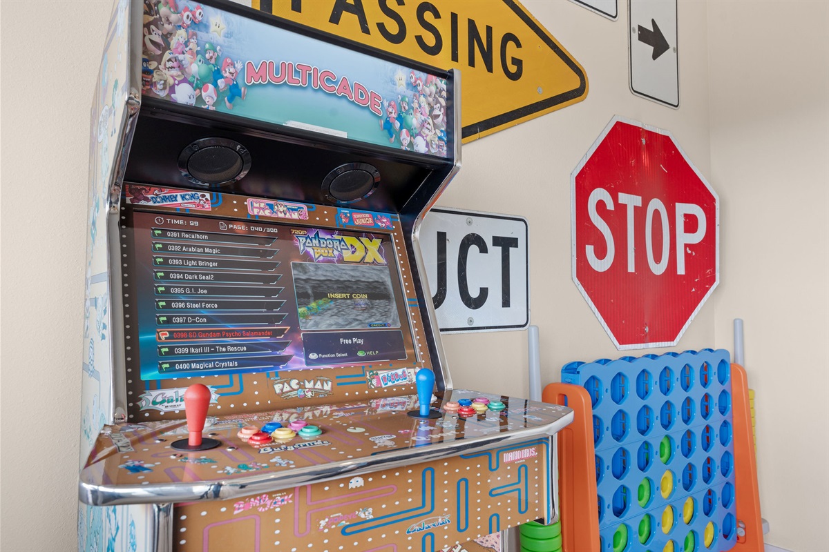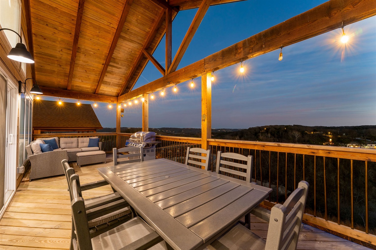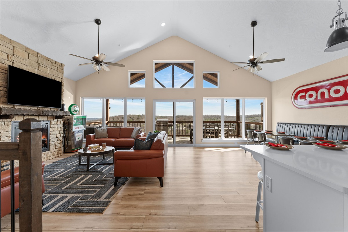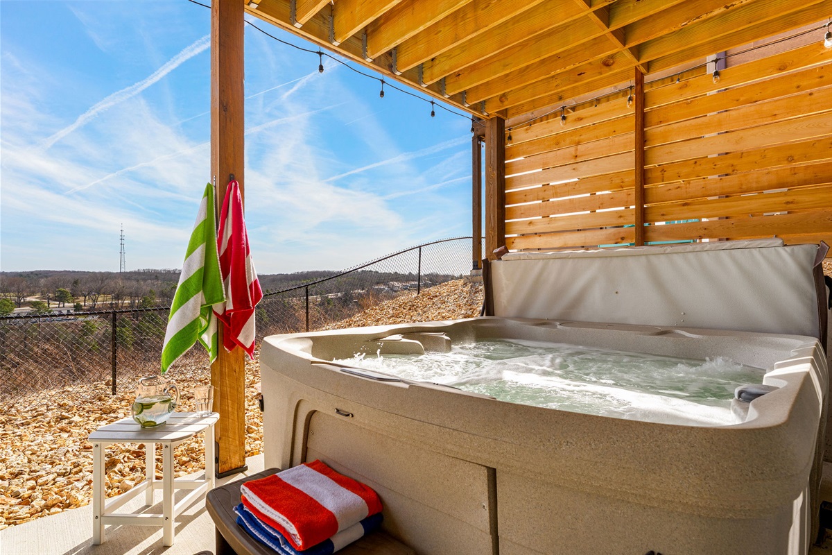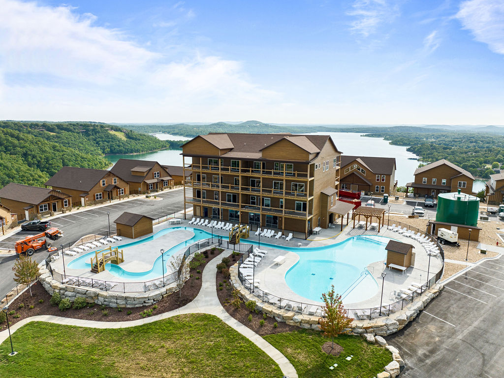 This community has outdoor amenities like outdoor/indoor pools, pickleball courts, basketball courts, corn hole, and a massive kid's playground area to create long lasting memories. This home provides unique board games, arcades, foosball table, to keep the fun going on those rainy days. Come inside after a long day of activities and relax in the hot tub, watching the sunset, while overlooking the lake. Create a delicious meal on the grill while playing outdoor corn hole with your family or friends on one of Bransons summer nights.