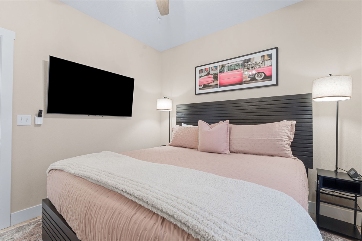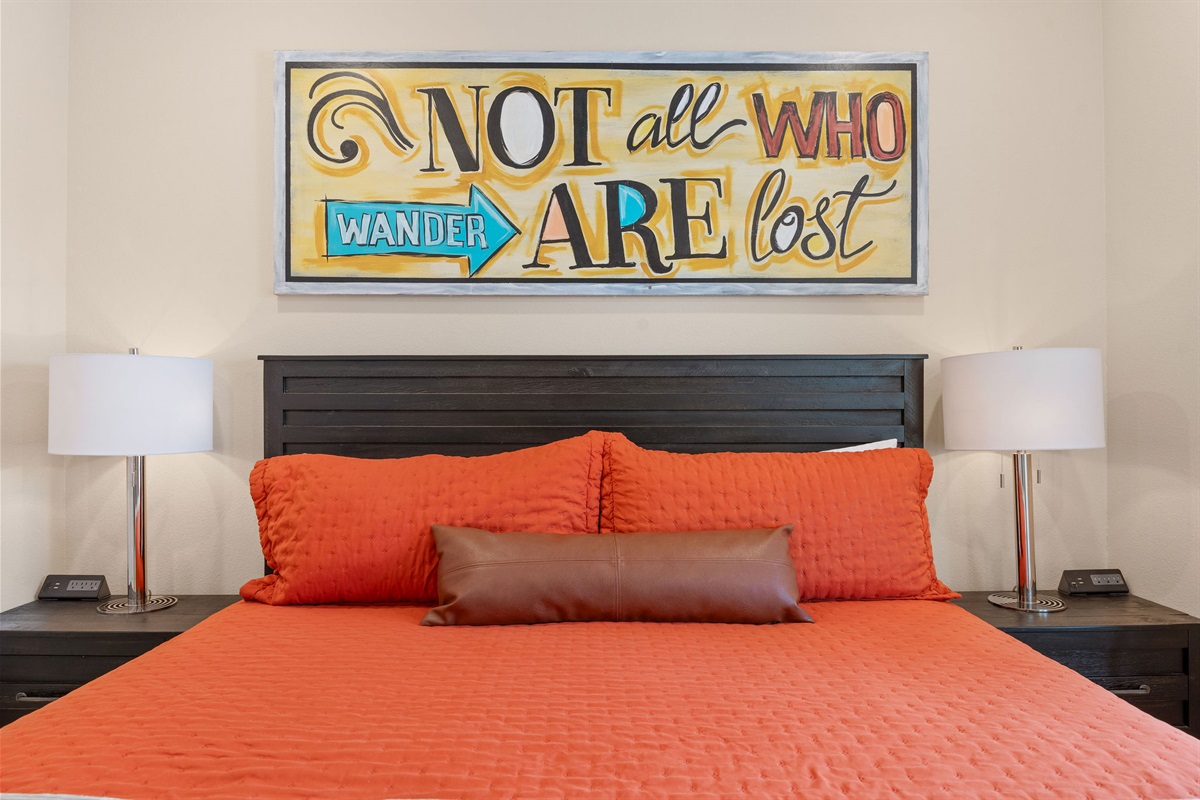 ✔ King bed | Ensuite bathroom | Closet | Room-darkening shades | Hangers | Linens