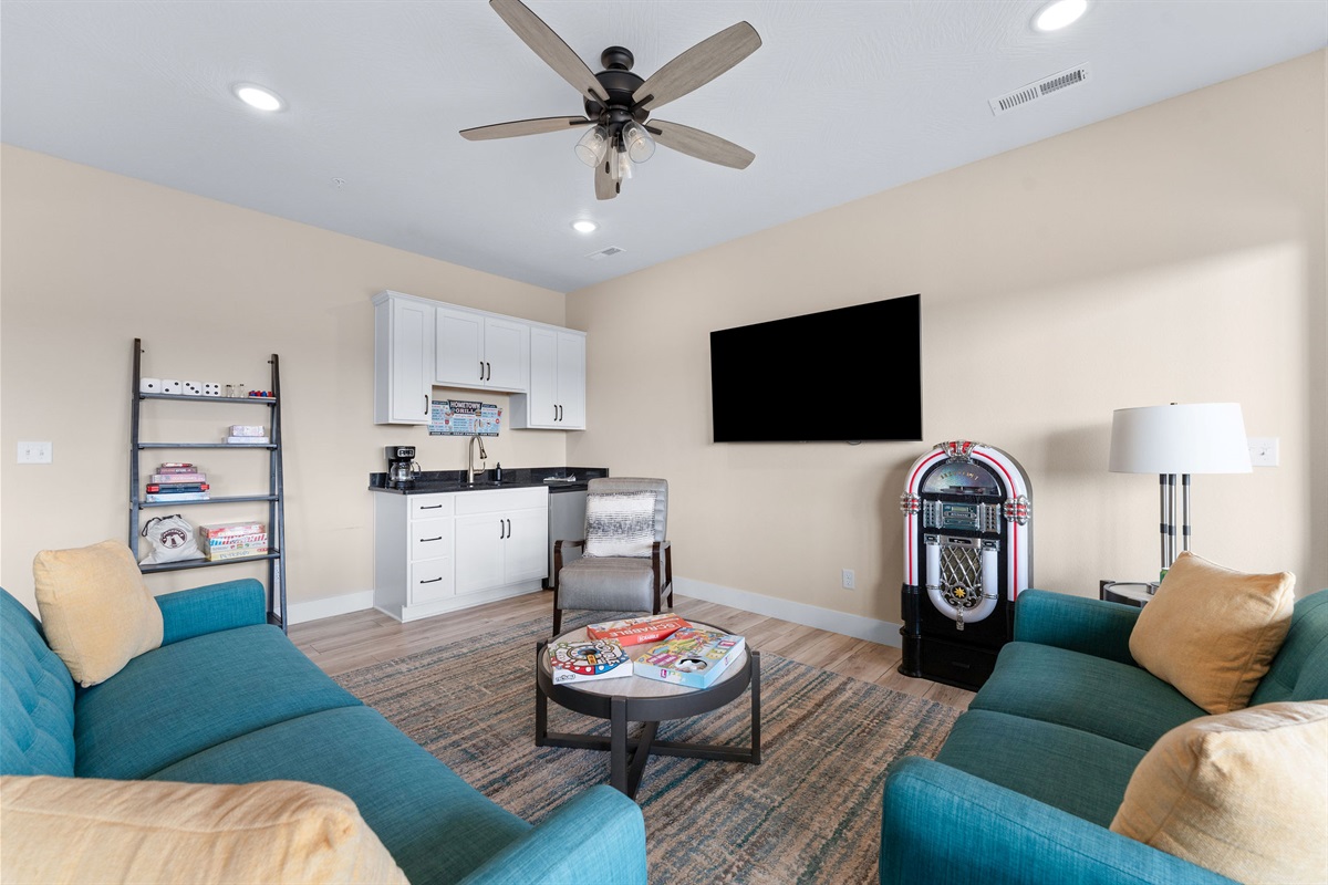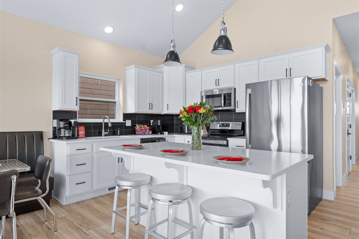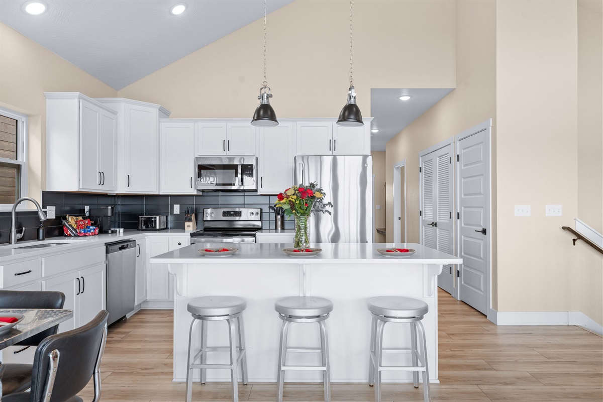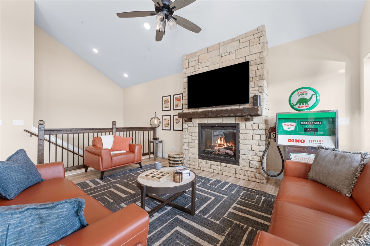 ✔ Kick back and relax in the open-concept living room with comfy seating, a fireplace, and a smart TV for movie nights or game day.