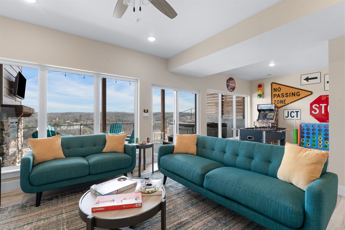 Fireplace | Smart TV | Plenty of seating | Natural lighting