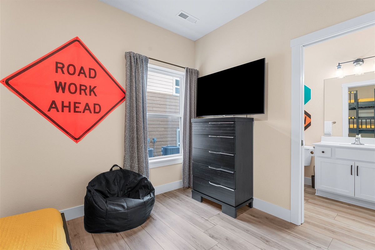 ✔ 2 bunk beds twin over full | Ensuite bathroom | Room-darkening shades | Ample space for kids